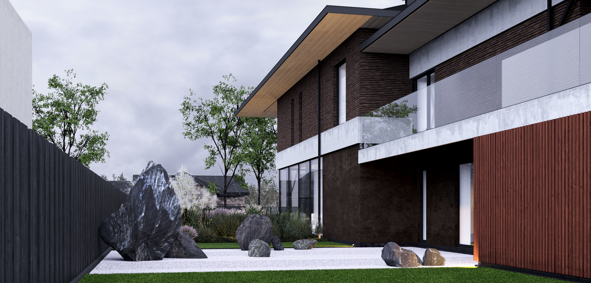 A family house for a couple combines his & her 'wants'. He prefers traditional architecture and the focus on functionality. She loves modern minimalist aesthetics.