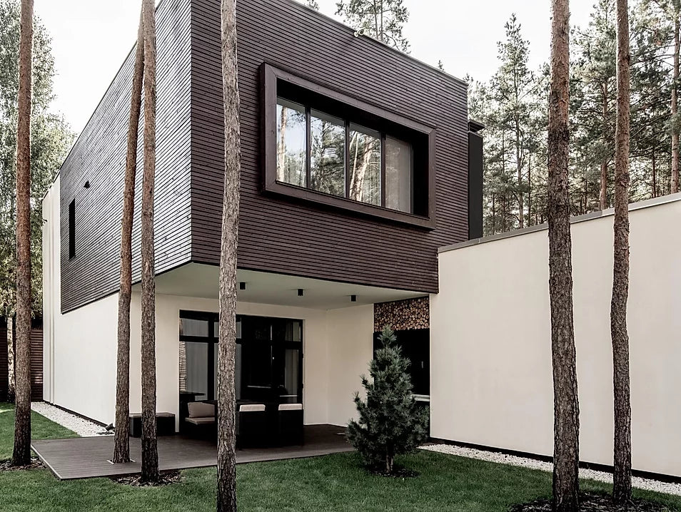 The main focus was on the spatial and functional organization. A boiler room took a lot of the first floor, so we changed the planning. The technical communications with pipes were arranged above the roof. They perfectly blend in with the pines around the house.