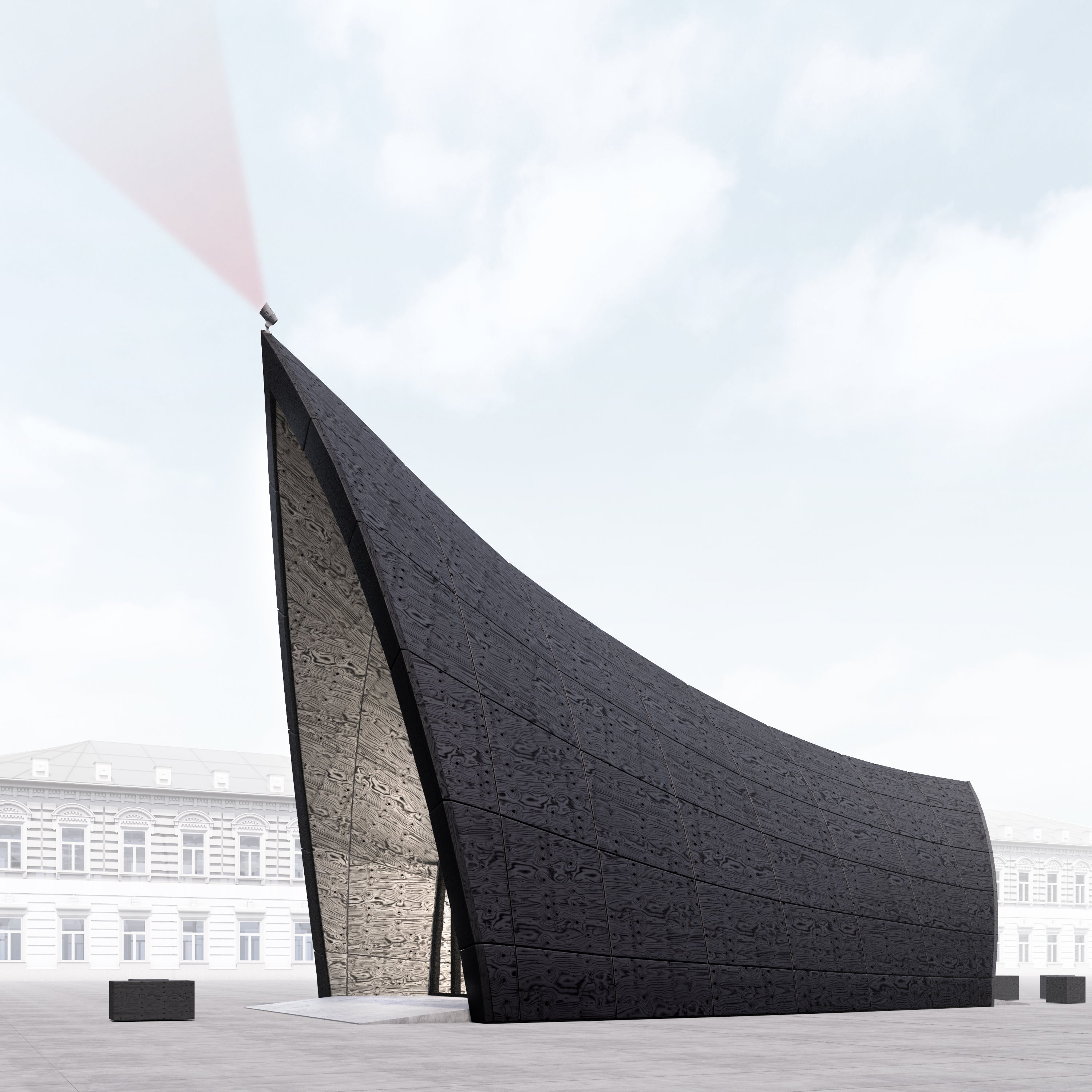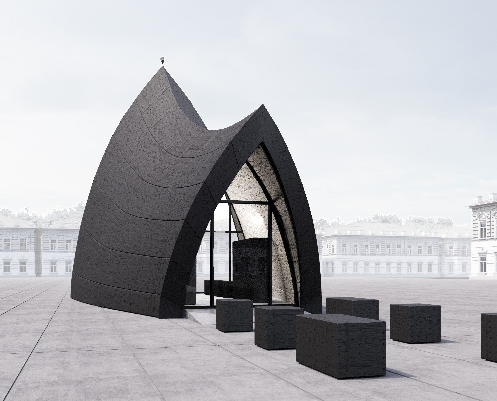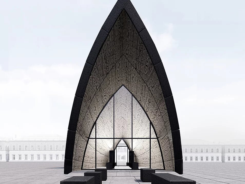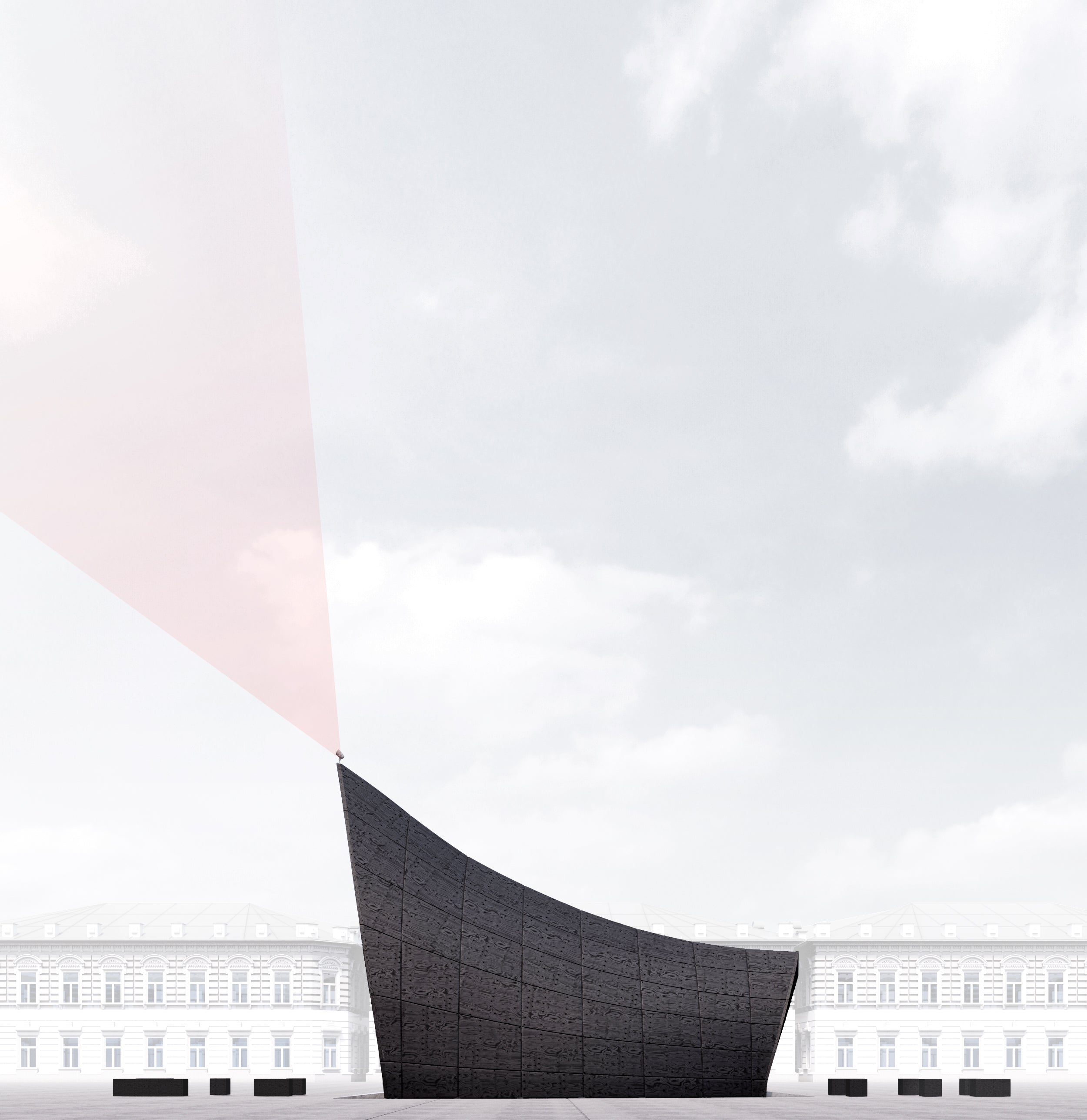 A mound is a high mound over an ancient burial ground, and the traditional attribute of a monument is fire. In our project, we combined both of these elements. The shape of the building is subconsciously associated with the shape of the mound, ravine. A street floodlight on the highest point of the roof symbolizes the eternal fire of memory for the dead.