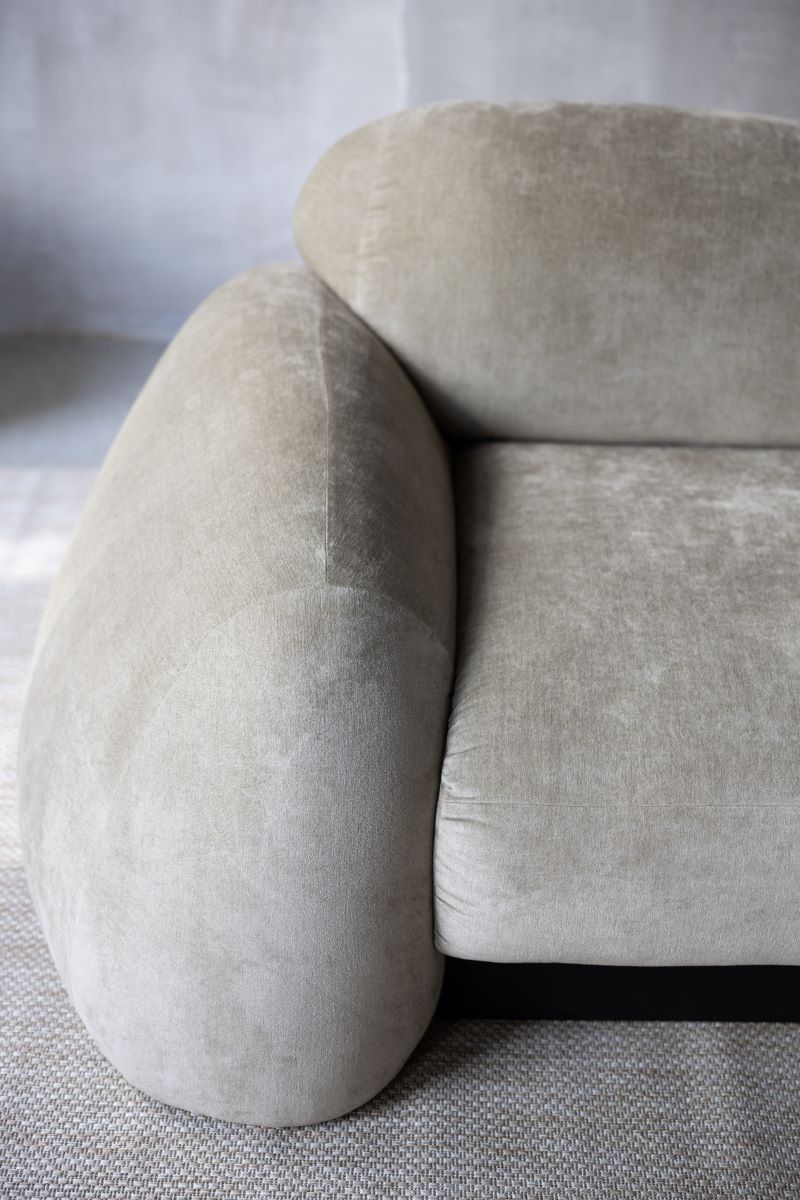 The collection includes an upholstered sofa, armchair, and a bench, each resembling coastal stones or pebbles. These organic shapes seem to have been naturally smoothed by the persistent touch of water over time. The soft contours and naturalistic forms make these pieces not only visually striking but also a tactile experience, evoking a sense of calm and balance.