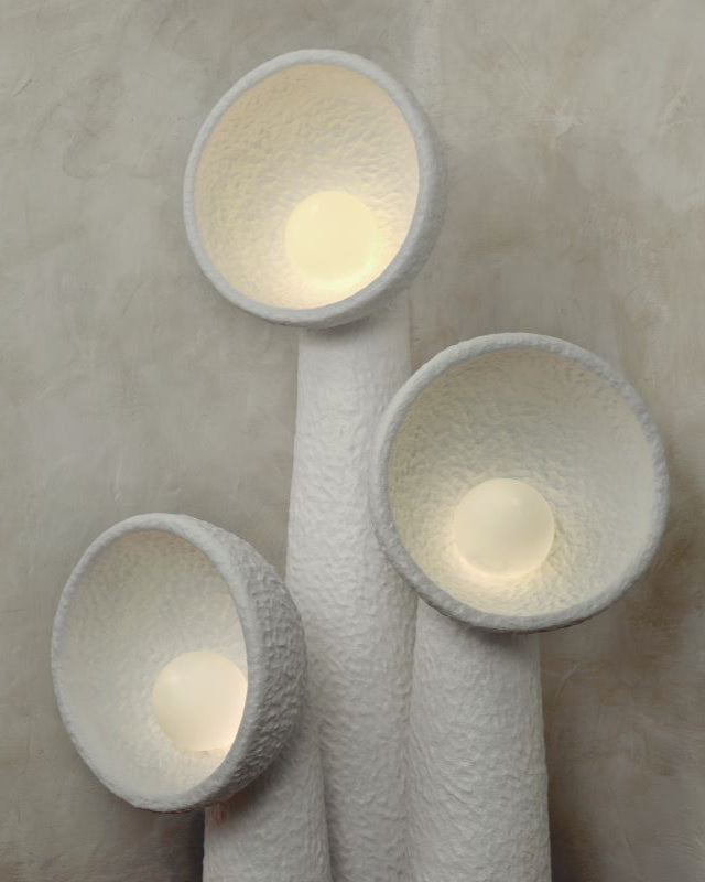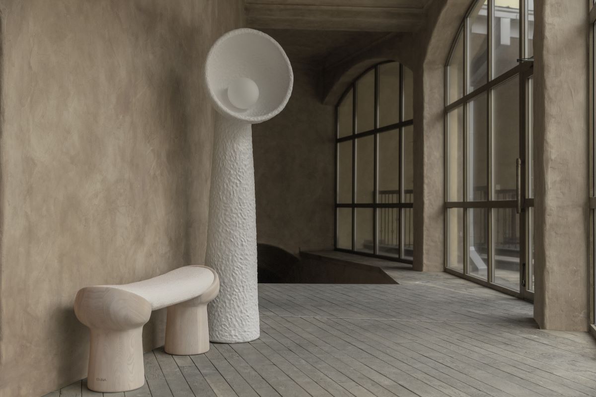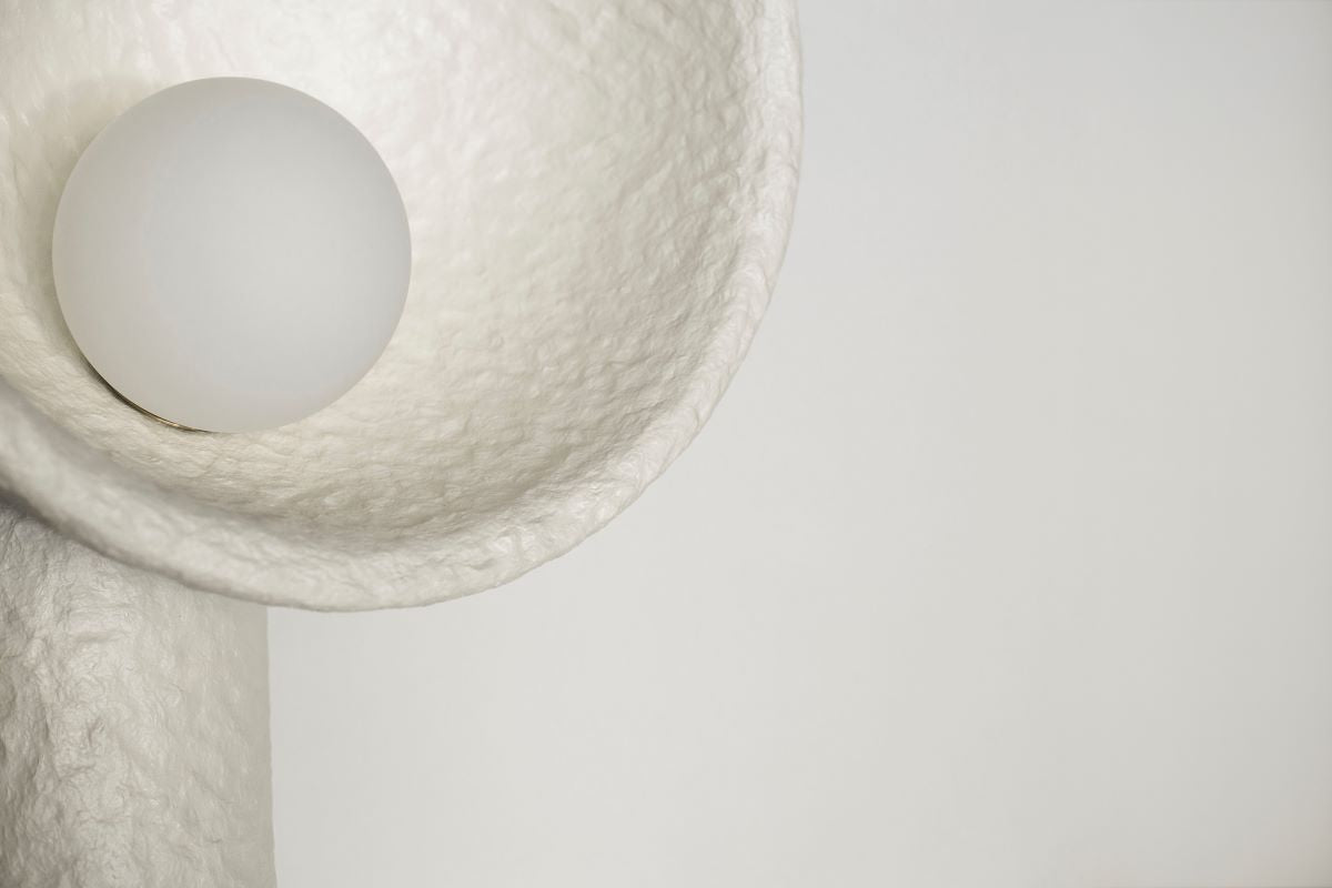 Each piece in the collection tells a story of connection to the land and respect for its resources. At its core is ZTISTA, Yakusha’s signature eco-conscious material, developed to embody her commitment to sustainability and circular design. This innovative material—a blend of clay, recycled paper, wood chips, and natural fibers—is sculpted by hand to reflect the raw, organic textures found in nature. Lightweight yet durable, ZTISTA is biodegradable, merging beauty with responsibility. It transforms each lamp into a tactile, living object that resonates with the earth’s natural imperfections and resilience